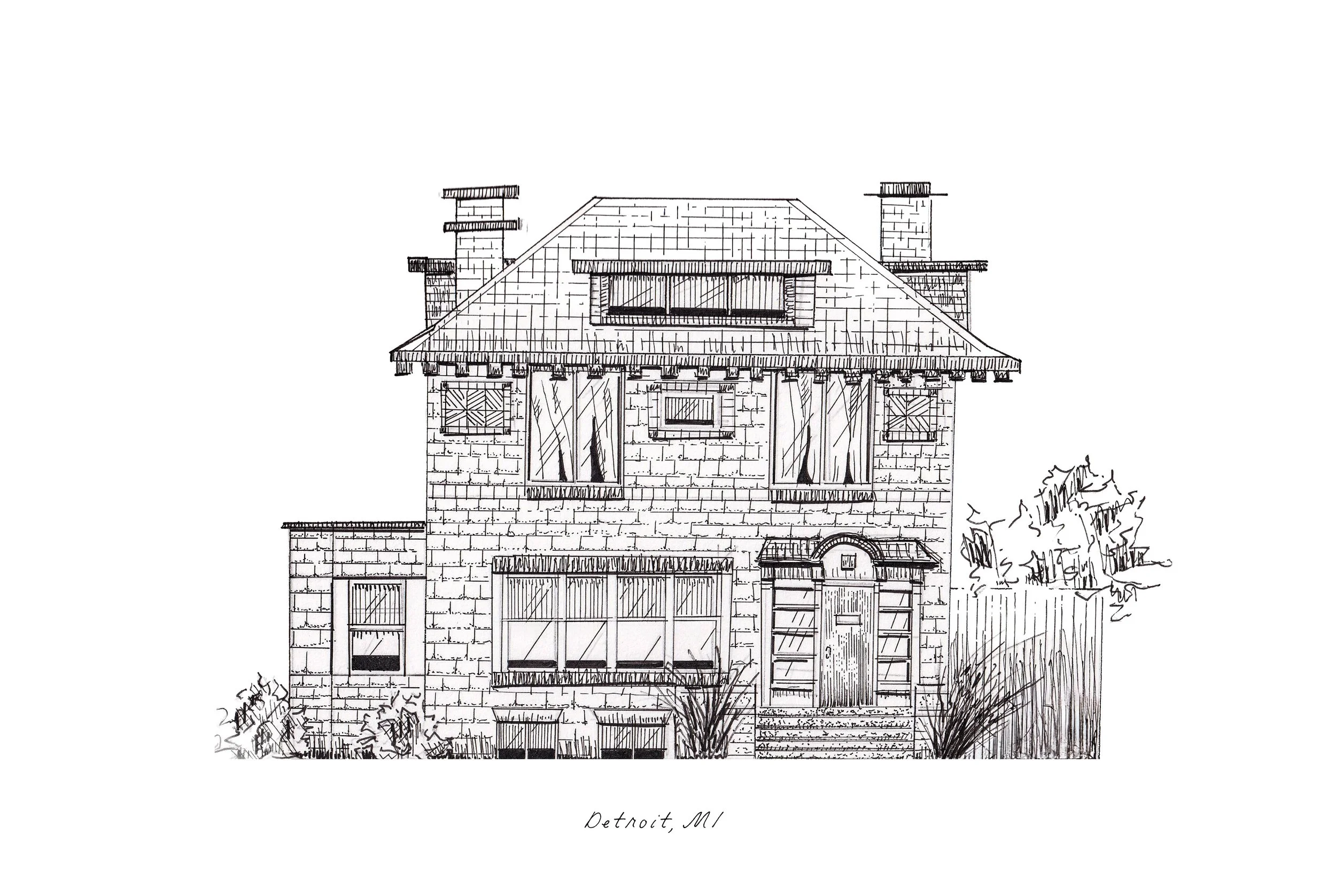 Commissioned artwork begins with a conversation. As you submit an inquiry, you’ll discuss the building, its special connection to you, and the details that matter most to you. Reference images and context help guide the drawing, which is then created slowly by hand using traditional tools.